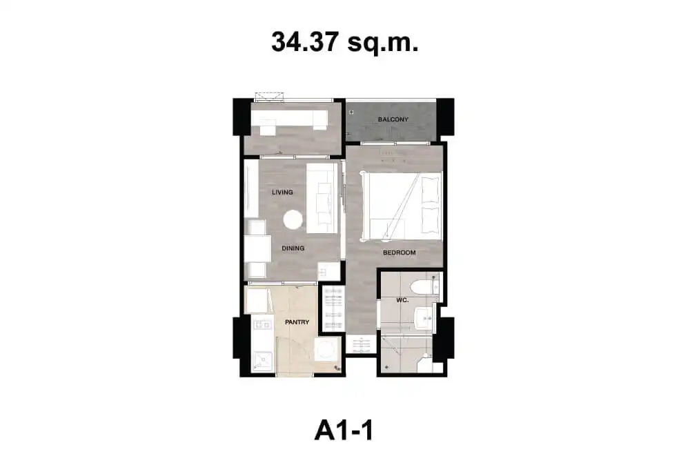 นิช โมโน สุขุมวิท – ปู่เจ้า – 1 BED PLUS